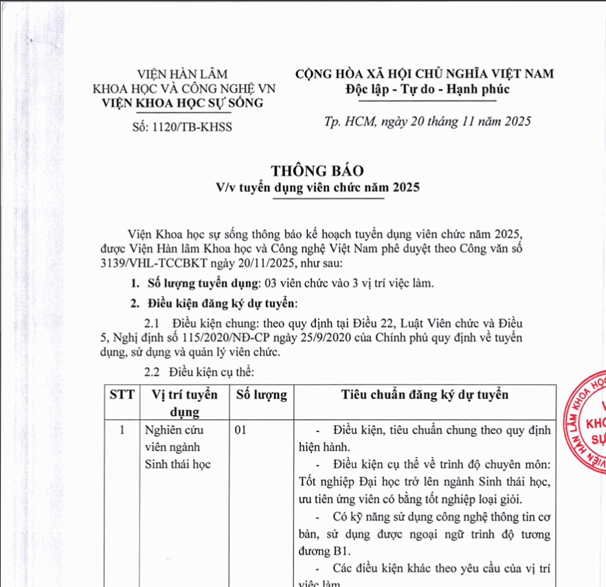 THÔNG BÁO Tuyển dụng viên chức năm 2025